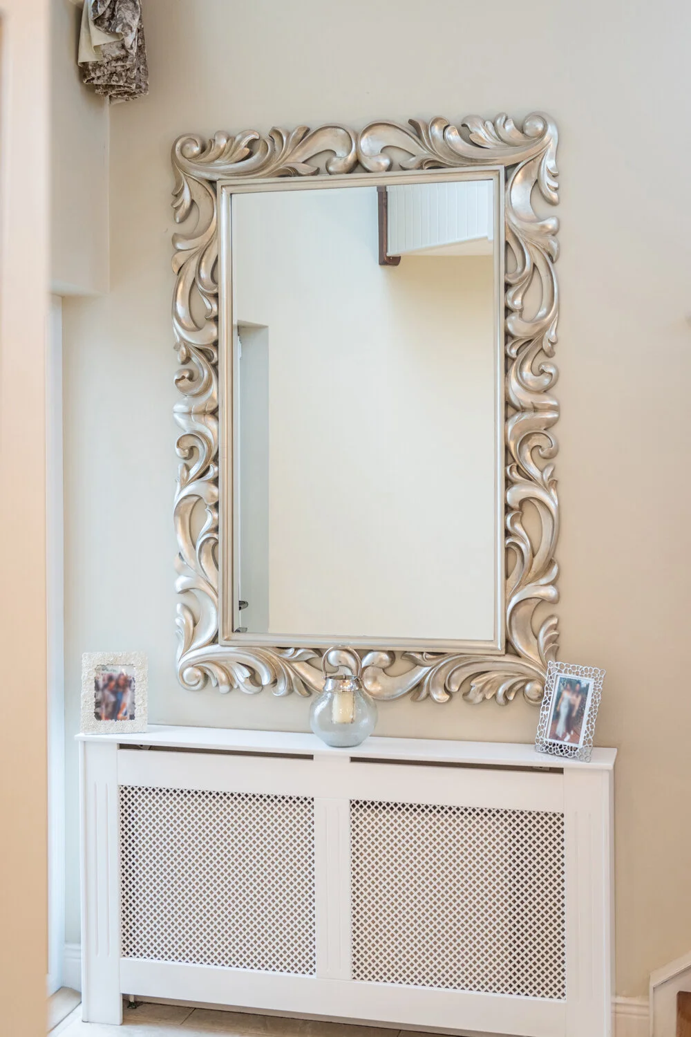 Valencia is a striking, over-sized rectangular mirror with an intricately detailed silver frame. Perfect for any room, it makes a statement in landscape or portrait orientations.